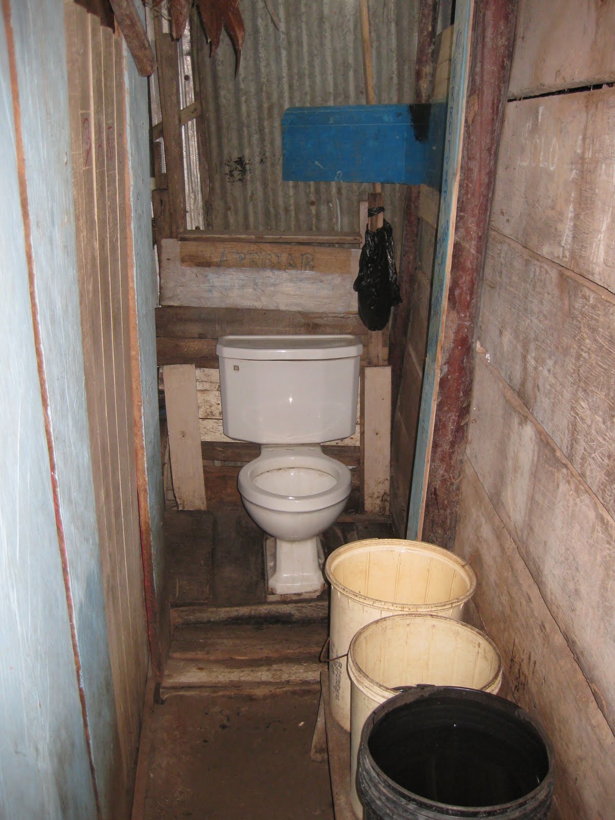 Klo-Spülung altmodisch, Lagunas, Peru 20/11/2014 1200 × 1600 WC-Spülung Kneipen-Klo in Lagunas, Peru. Gespült wird mit Wasser aus Eimern.