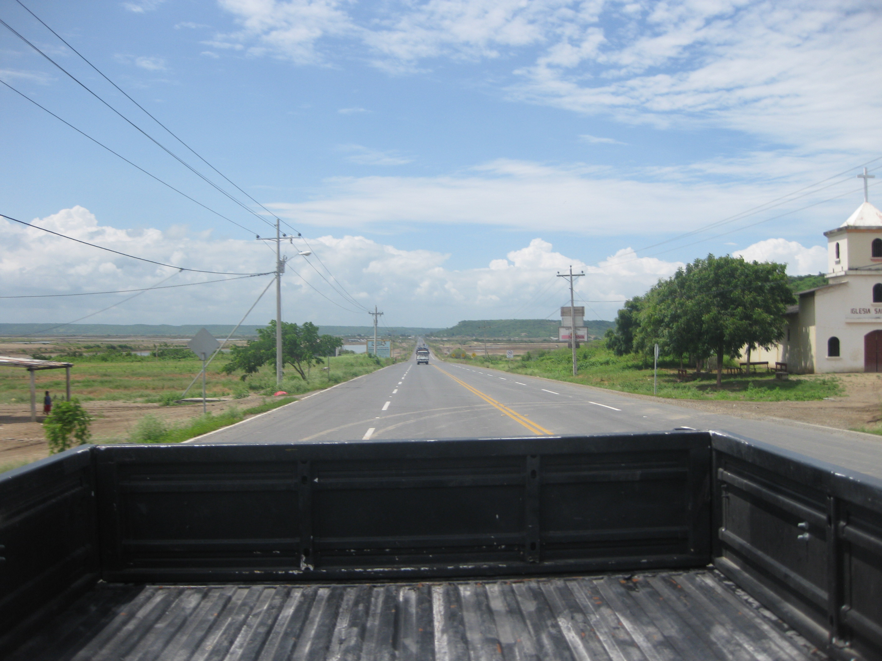 Per Anhalter an Ecuadors Küste. Landschaft eher weniger aufregend.